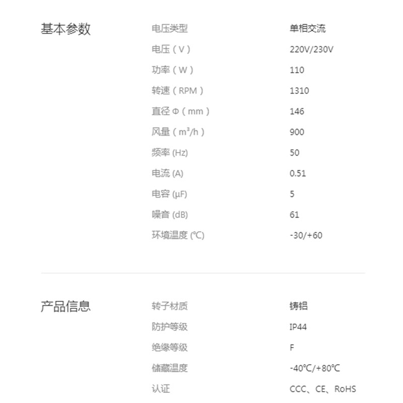 • YWF.F2S-150-070AX0A全新新風系統低噪音風機無框交流