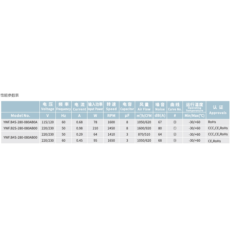 YWF.B4S-280-080AB0A全新原裝280系列后傾離心風扇圓形