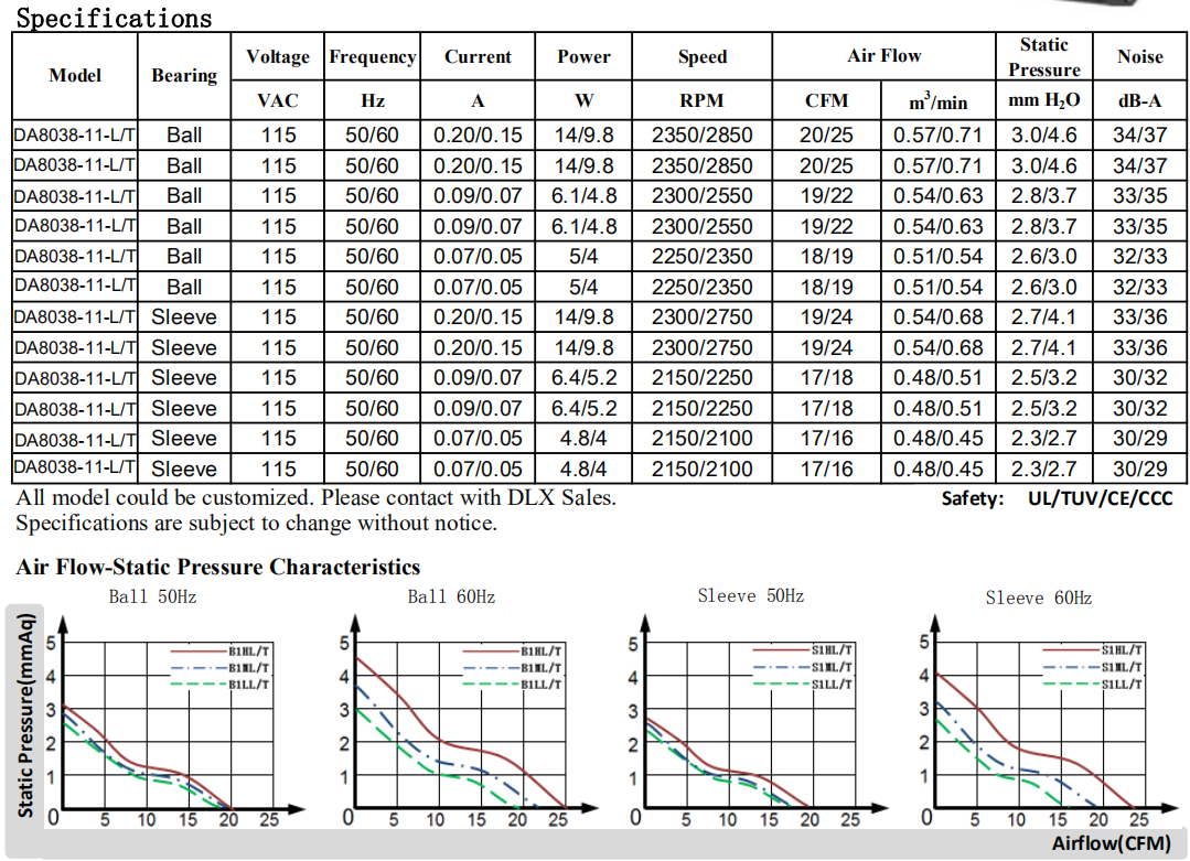80 x 80 x 38mm DA8038 115/220V軸流風機現貨,可定制OEM,8厘米風扇