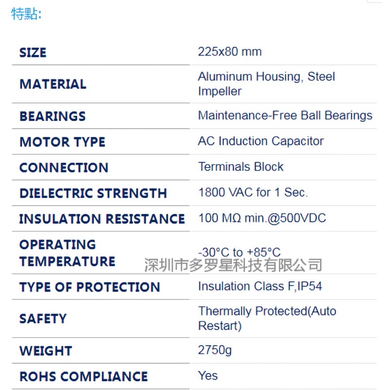 臺灣達盈風機AC軸流風機系列(全金屬耐高溫風機)(具體規格參數請咨詢客戶)