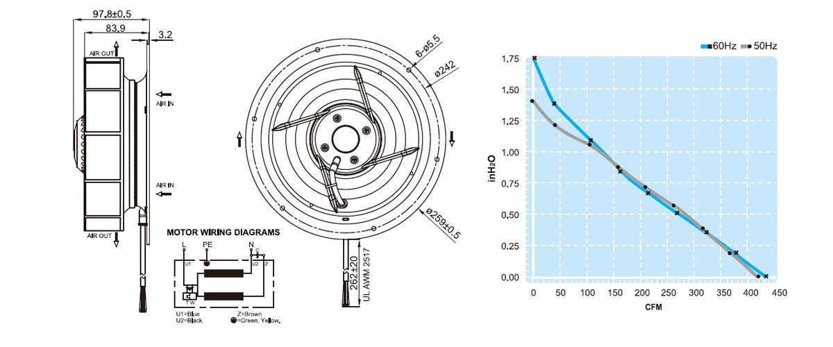 UF220APA11H2C2F渦流式工頻離心風機空氣凈化器風扇高品質低噪音